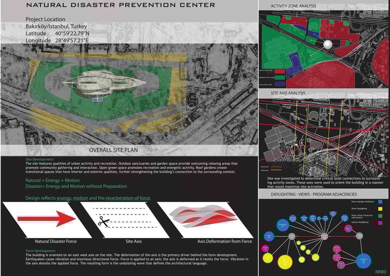 This International Architecture Competition is called in order to select the design of an Istanbul Disaster Prevention and Education Centre, which is to be the first institution in Turkey with the intended facilities. Istanbul Metropolitan Municipality is willing to establish a centre fully equipped with adequate technology and facilities in order to be prepared against a disaster that may affect Istanbul and to develop public consciousness about the disasters and specifically about earthquakes. The centre will also be hosting relevant courses, congresses and seminars. Equipped with visual and audio educational appliances and simulation systems, the centre will allow experiencing earthquake, hurricane, fire fighting, smoke, liquefaction, tsunami, first aid and emergency communications. It is also intended to offer information to the visitors through a planetarium, library, seminar/meeting halls, information boards, etc. which are to be designed using the latest technology.